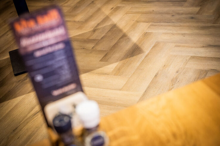 Bij de keuze voor de vloer is er goed gekeken naar de eigenschappen van het pand. Door de visgraatvloer oogt het diepe pand veel breder.