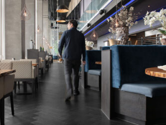 De 6930 is een bijna zwarte visgraat vloer, eventuele gebruikssporen zijn beter zichtbaar ...