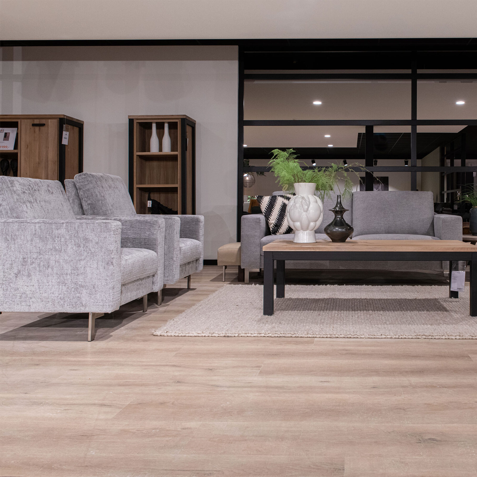 | Dikte vloer | Lijm 2,5 mm en click 6,5 mm (click incl. ondervloer) |