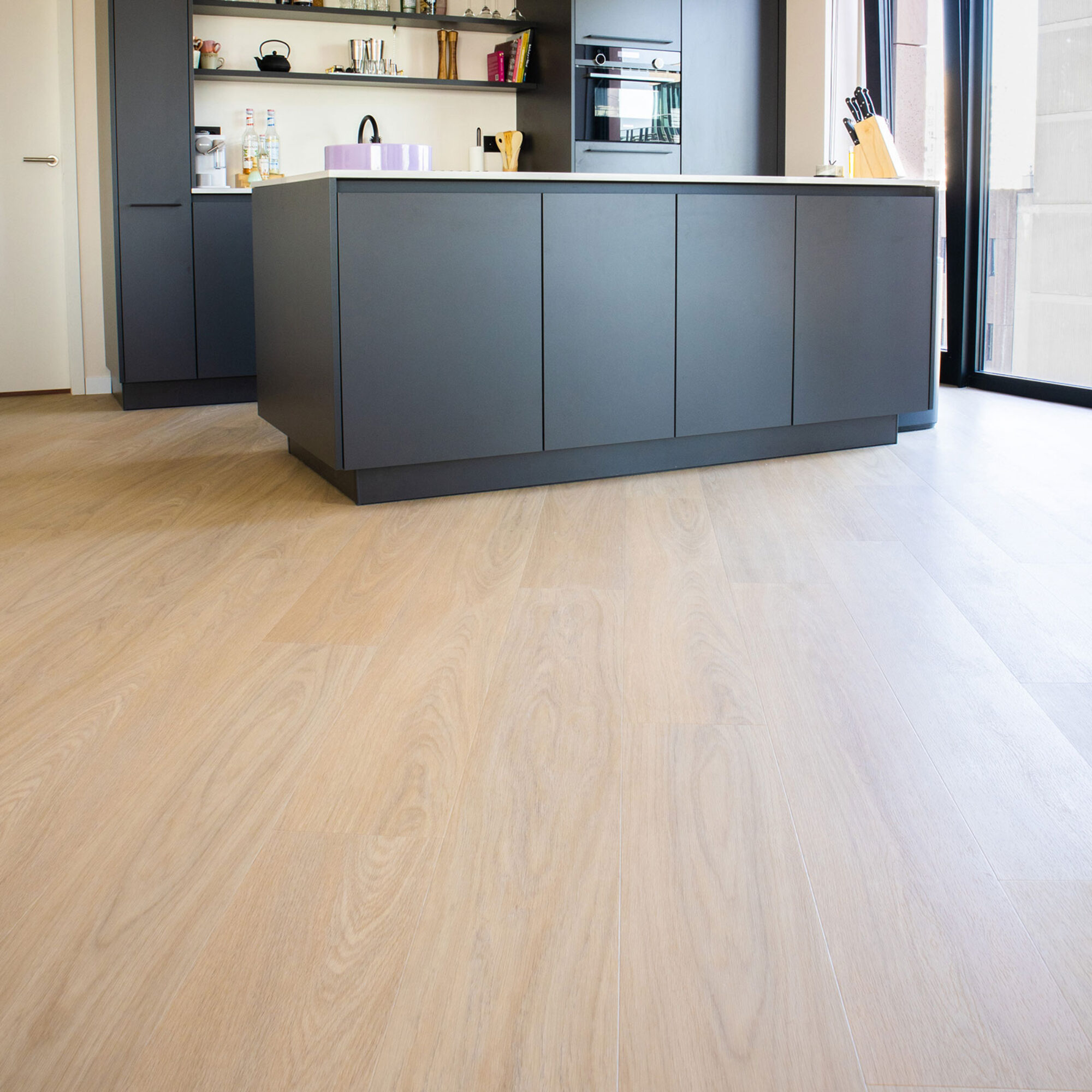 Bekijk de diktes van onze vloeren. De clickvariant is dikker dan de lijmvariant en is voorzien van een geïntegreerde ondervloer.