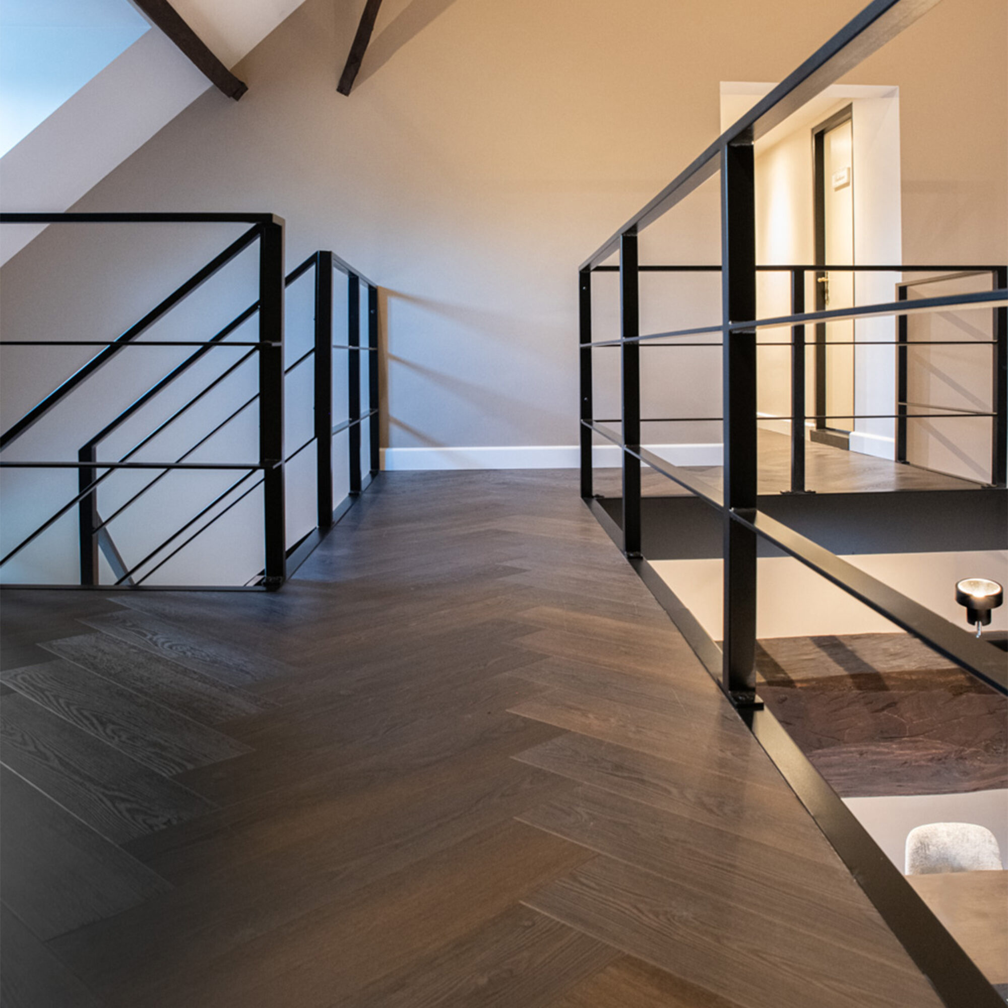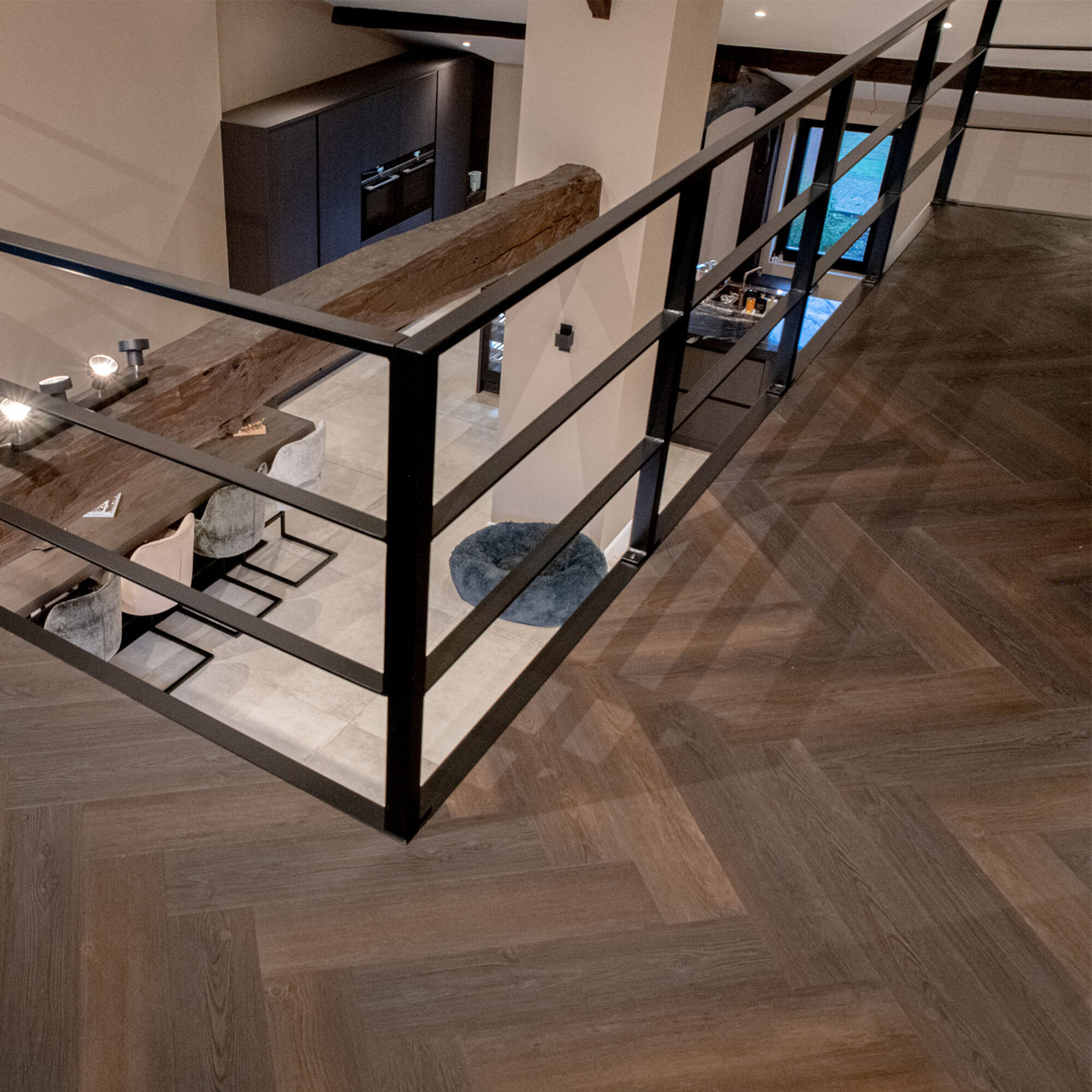 Visgraat 4530: een donkere visgraat vloer met alle voordelen van PVC. Onderhoudsvriendelijk, duurzaam, mat afgewerkt en 25 jaar garantie. Gratis stalen! De 4500-serie past goed thuis in de landelijke stijl. Een naaldhout serie met natuurlijke planken, van licht naar donker. De twee kleuren zijn ook verkrijgbaar in visgraat.