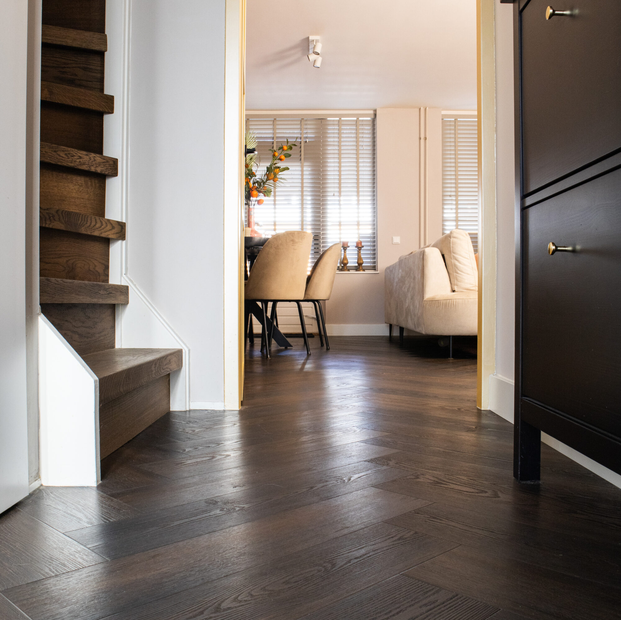 Onze planken en tegels zijn rondom schuin afgesneden. Dit noemen we de V-groef of velling. Lees hier ons blog voor alle informatie over de v-groef! |