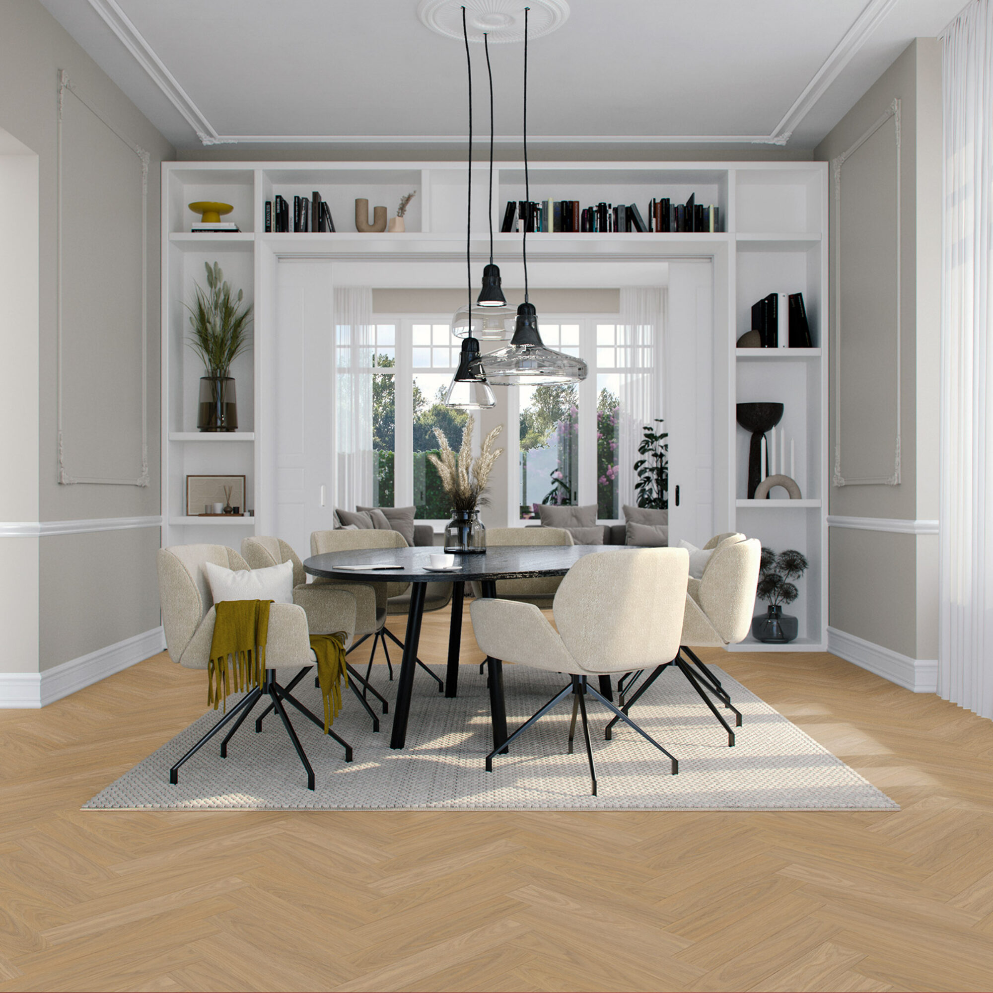 De 7870 is een lichtbruine eikenhouten vloer, perfect om warmte en stijl toe te voegen aan een modern interieur.