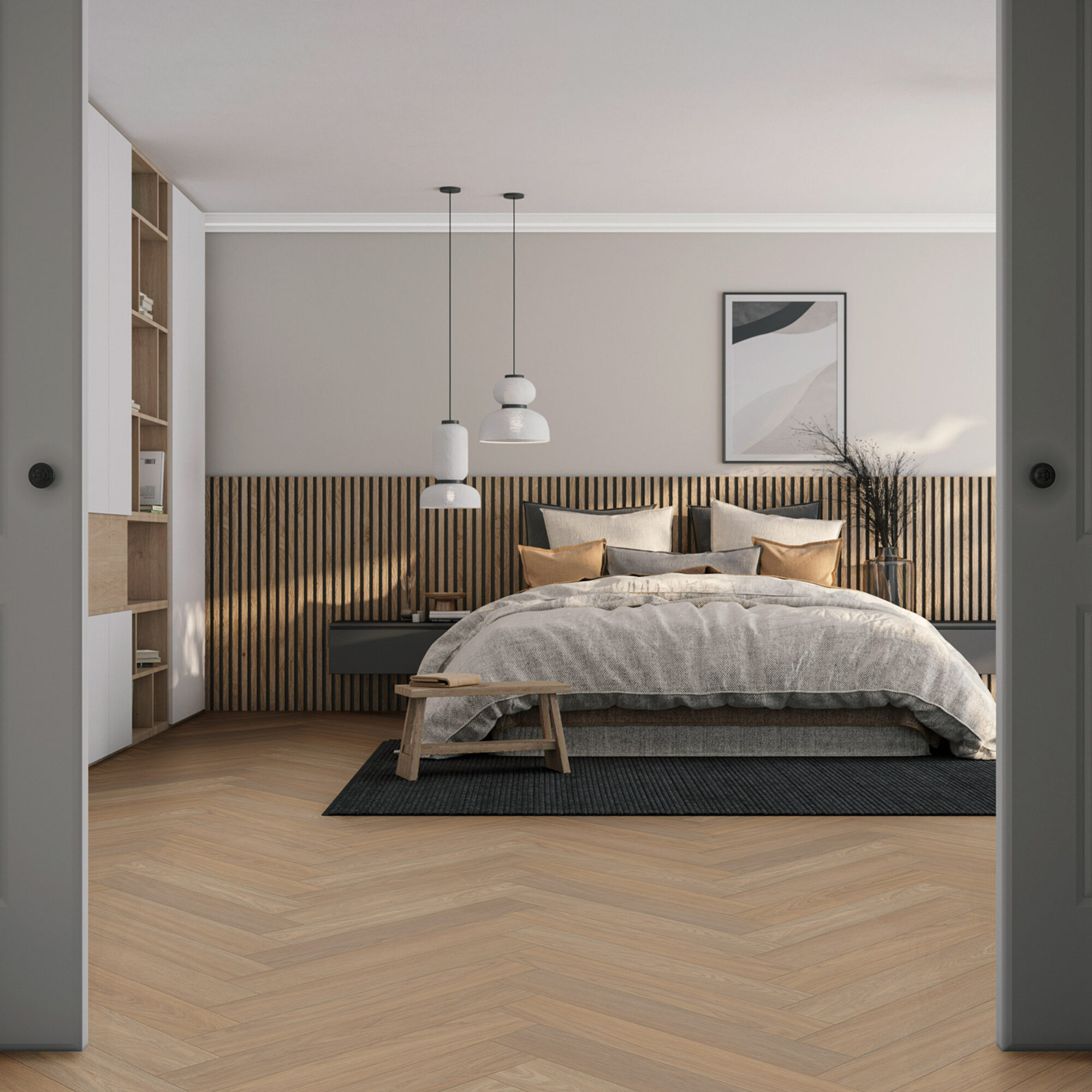 De Bologna serie bestaat uit zes kleuren, geïnspireerd door de charmante stad Bologna, waar warme tinten en natuurlijke materialen perfect samensmelten. Deze vloeren hebben een woud touch embossing, waardoor de natuurlijke structuur van het eikenhout prachtig tot leven komt, en voel je de textuur echt. Wat deze serie echt uniek maakt, is de kleurschakering: elke plank heeft subtiele variaties in kleur, wat zorgt voor een levendige en dynamische uitstraling in elke ruimte. Deze serie is volledig verkrijgbaar in lijm, click, walvisgraat en Hongaarse punt.