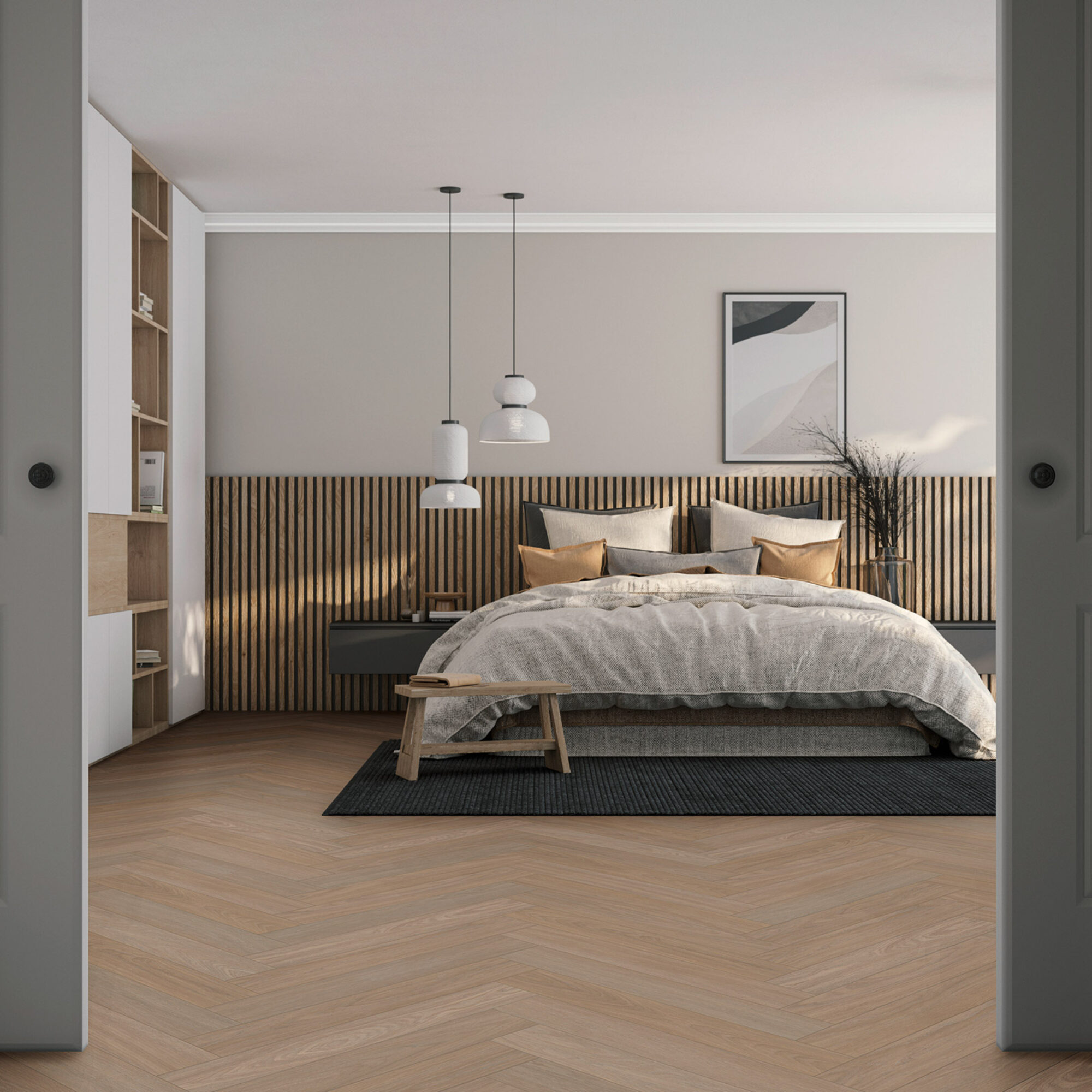 De Bologna serie bestaat uit zes kleuren, geïnspireerd door de charmante stad Bologna, waar warme tinten en natuurlijke materialen perfect samensmelten. Deze vloeren hebben een woud touch embossing, waardoor de natuurlijke structuur van het eikenhout prachtig tot leven komt, en voel je de textuur echt. Wat deze serie echt uniek maakt, is de kleurschakering: elke plank heeft subtiele variaties in kleur, wat zorgt voor een levendige en dynamische uitstraling in elke ruimte. Deze serie is volledig verkrijgbaar in lijm, click, walvisgraat en Hongaarse punt.